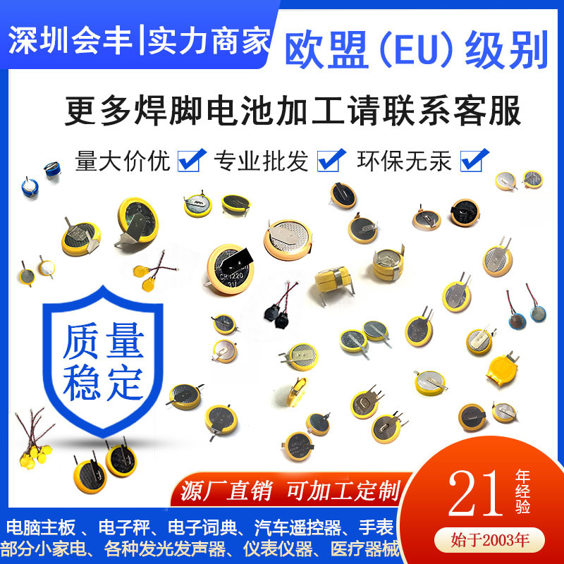 工場直販 高品質 cr1220 線接式ボタン電池 ピン cr 線接式ピン加工 環境認証取得