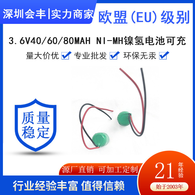 NI-MHニッケル水素電池3.6V60mah3.6V80mah3.6V80mahニッケル水素充電ボタン電池コード付き