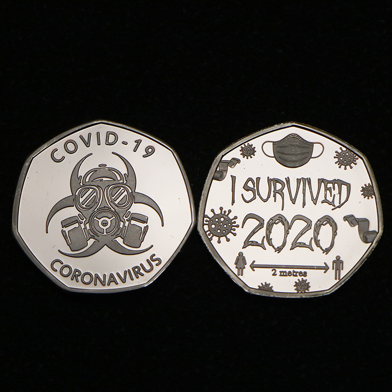 2020コロナウイルス八角形真鍮銀メッキ記念貨幣疫病天使銅銀貨コレクション27mm