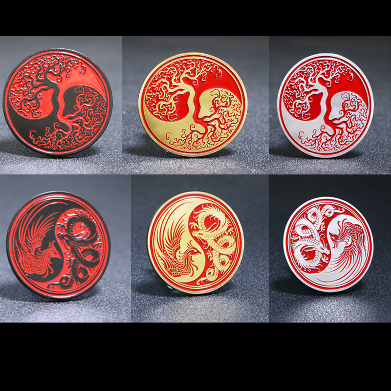 カラー塗装陰陽龍鳳陰陽樹記念章立体レリーフメッキ黒中国風金属バッジ