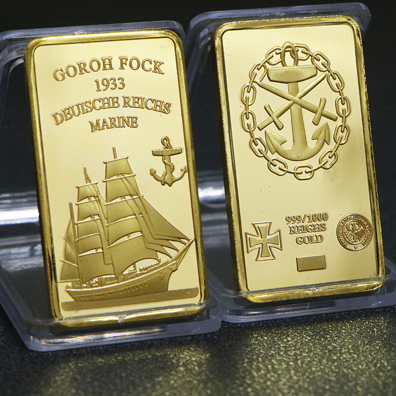 ドイツ記念貨幣帆船角型金メッキブロック金貨コレクション記念外貨角型金条金ブロック記念硬貨