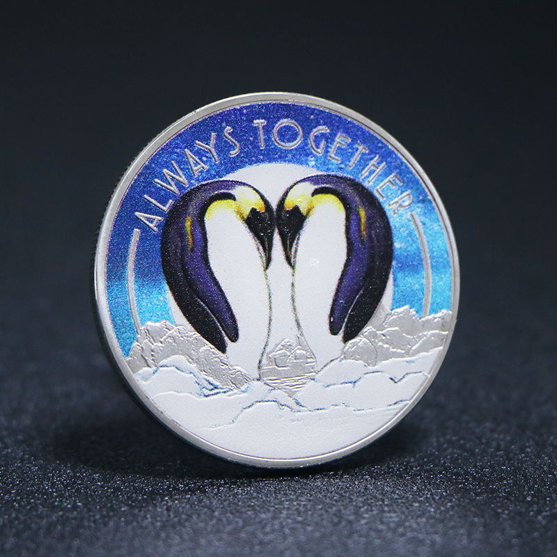 ペンギン彩色銀メッキ記念章南半球海洋の舟ハート型ペンギン動物コインカップル記念コイン