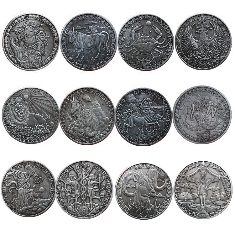 大量スポット十二星座コイン天秤水筒射手タロ星座レトロ銀貨プレゼント