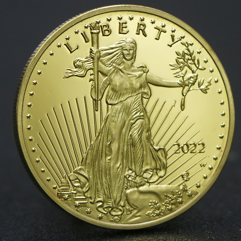 2022年アメリカ自由女神金貨記念貨幣章金メッキ鷹洋幸運硬貨アメリカ対外貿易貨幣
