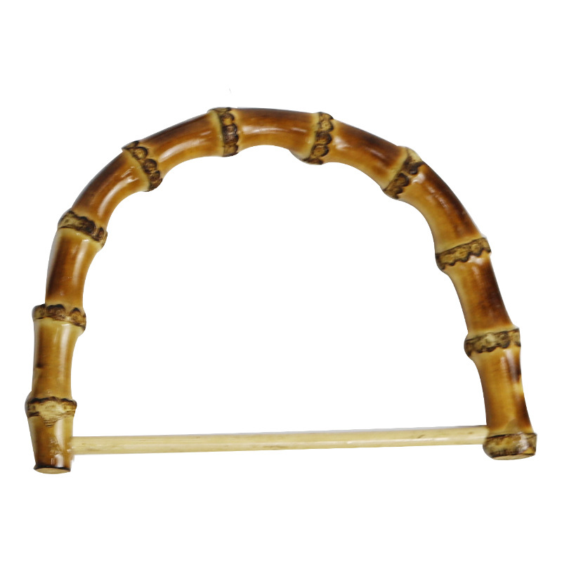 真竹【左右穴】20cm竹手挽きカレー色手提げ真竹節手提げハンドバッグ取っ手