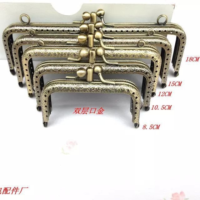 8.5 10.5 12.5 15 18cm角型三段ヒンジ三つ折り口金二重口金古銅