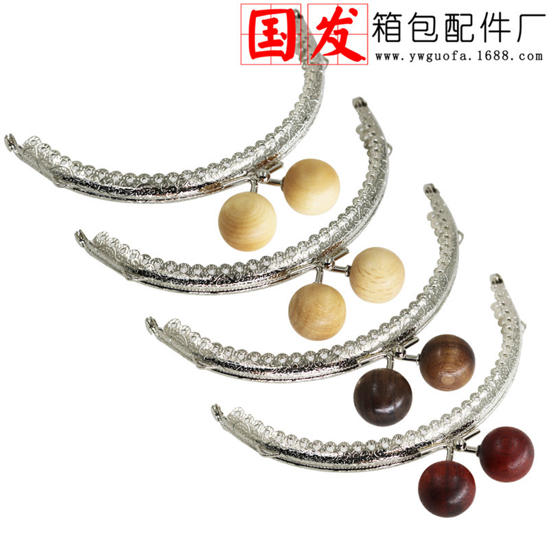 両耳10.5cm半円エンボスレース木珠口金卸売り銀色20mm実木4色キャンディーヘッド