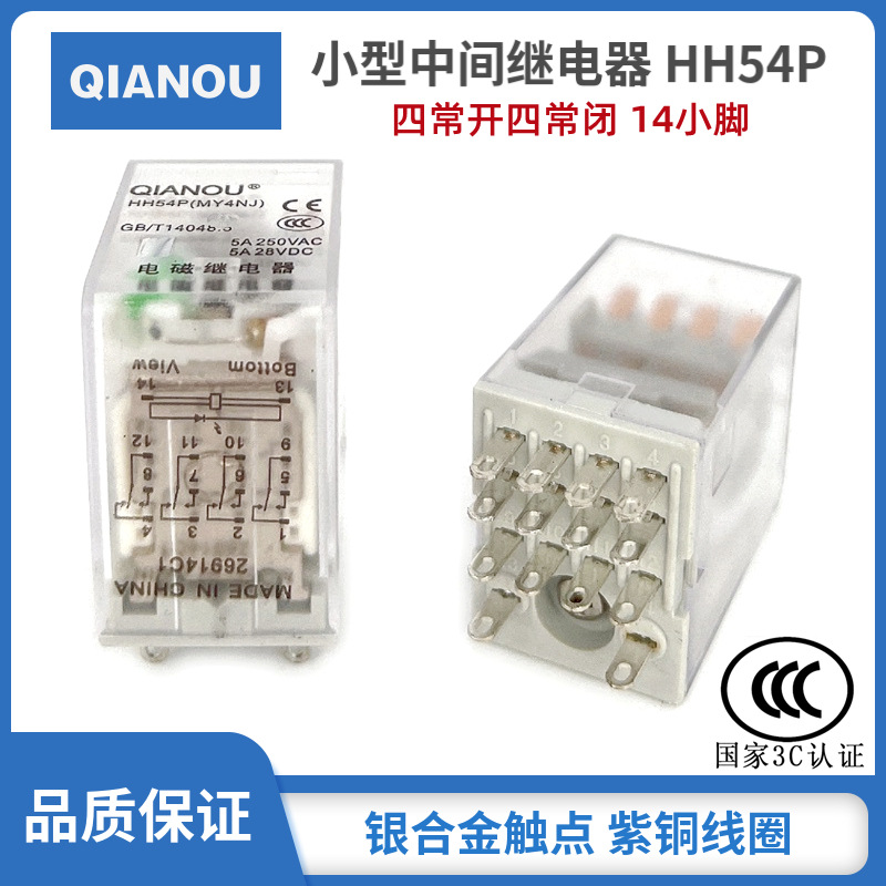 スポット電磁中間小型リレーhh54pl (my4nj) ランプ付き14本足銀接点3c認証