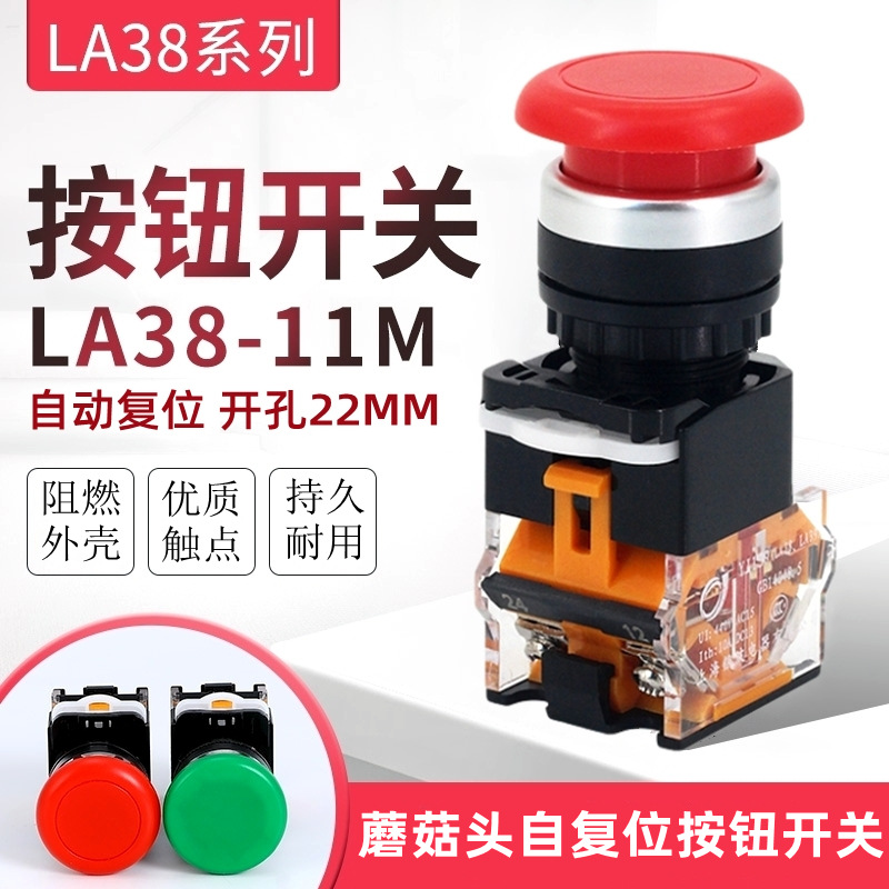 キノコヘッドセルフリセットボタンスイッチLA38-11M赤緑色電源スタートストップスイッチ穴22mm