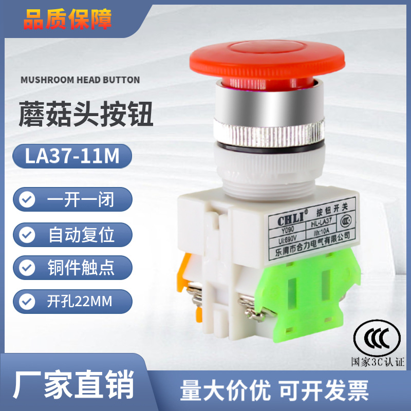 キノコヘッド自動リセットボタン (y0907) lay7 LAY37-11Mスタートストップスイッチ開孔22mm