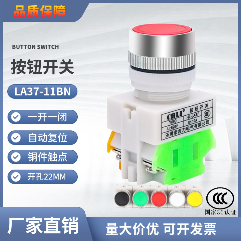 平頭押しボタンスイッチ (y090) LA37-11BNは常に閉じている自動リセットセルフロック穴22mm