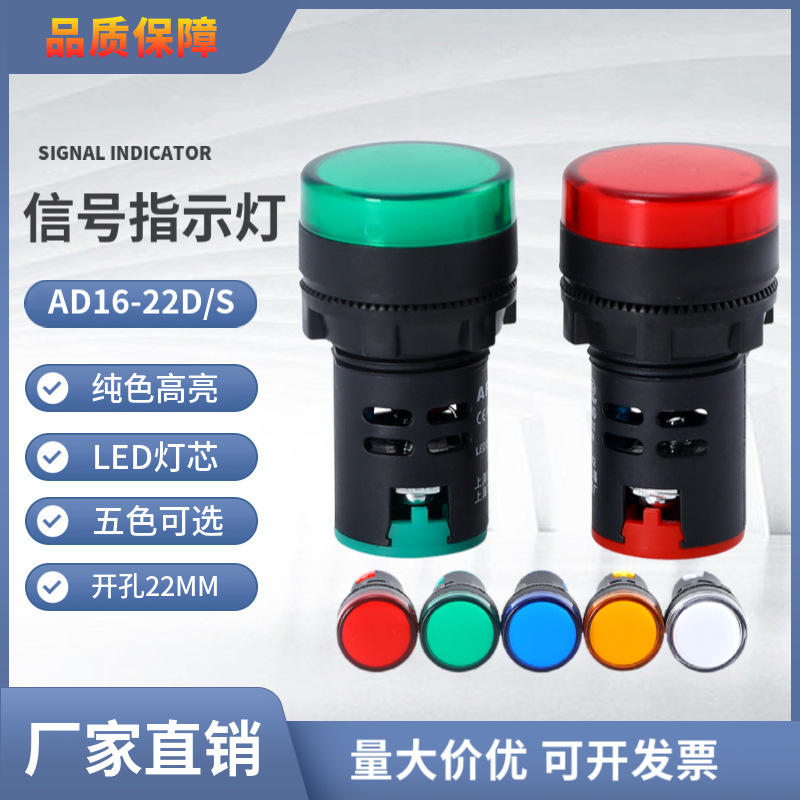 LED電源信号表示灯AD16-22DS純赤緑黄青白色24V220V380V開孔22mm