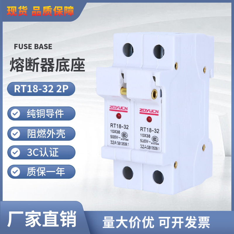 メーカー直販ガイド式円筒形キャップヒューズRT18-32X 2p銅部品セラミックヒューズベース