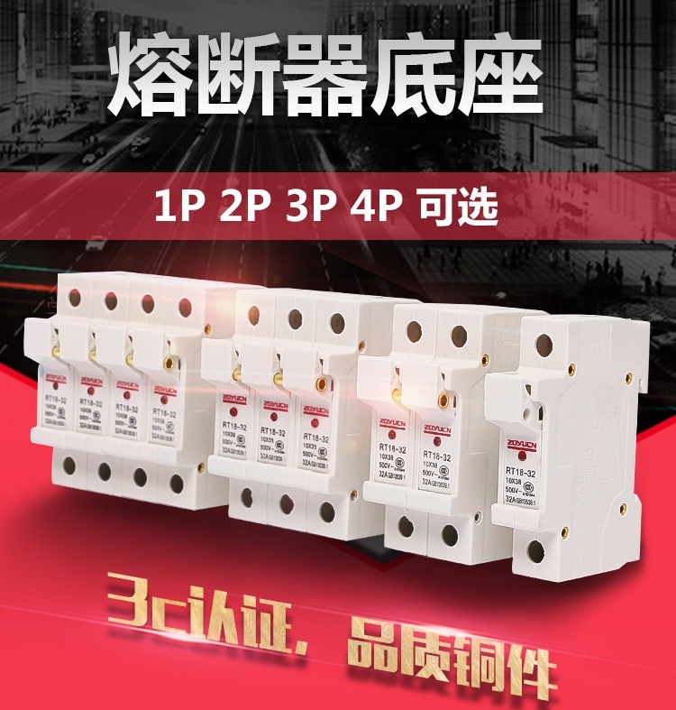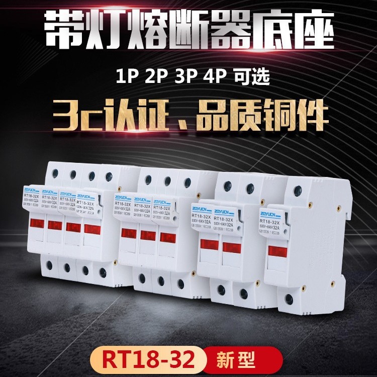 セラミック保険管ヒューズベースRT18-32X 1p/2p/3p/4pライト付き新型厚手紫銅部品