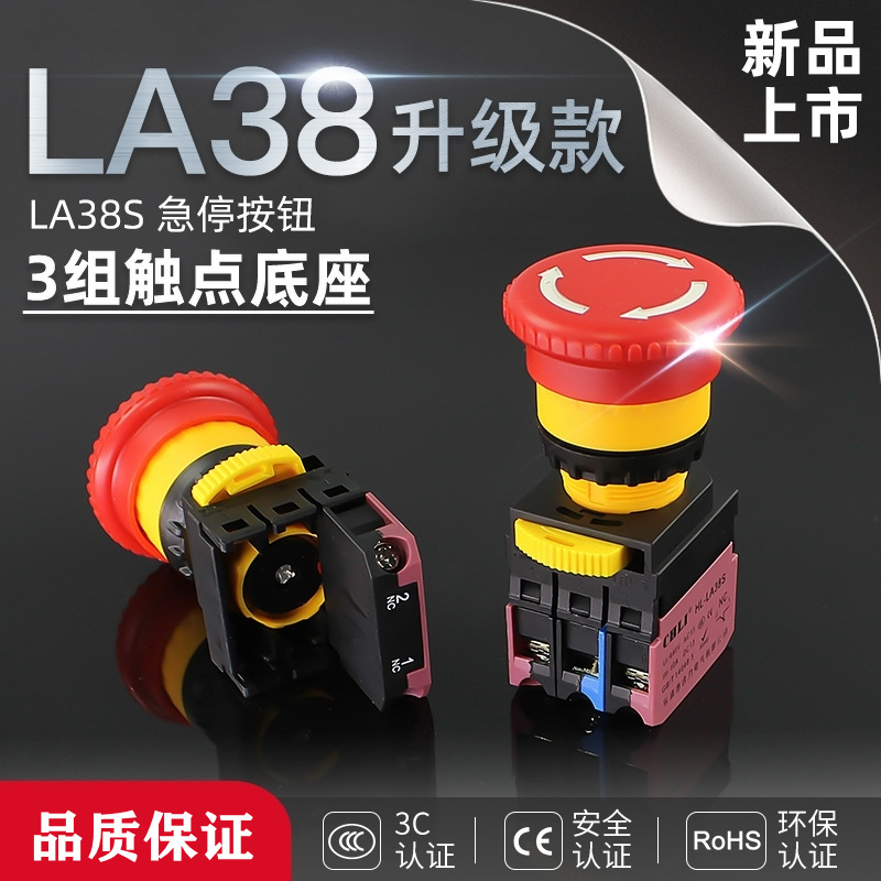 新型キノコヘッド急停止ボタンスイッチLA38S-01/11/03zs緊急セルフロックスイッチ開孔22mm