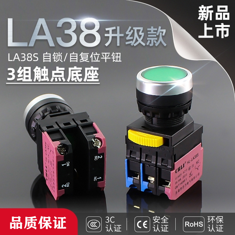 平頭ボタンスイッチLA38S-11BN/zsアップグレードショート自動リセットセルフロックボタン穴22mm
