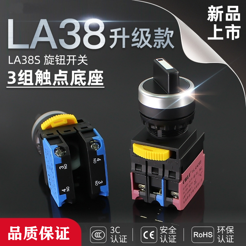 新型ノブスイッチLA38S-10X/2 11x/2 20x/3二段3段セルフロック選択スイッチ22mm