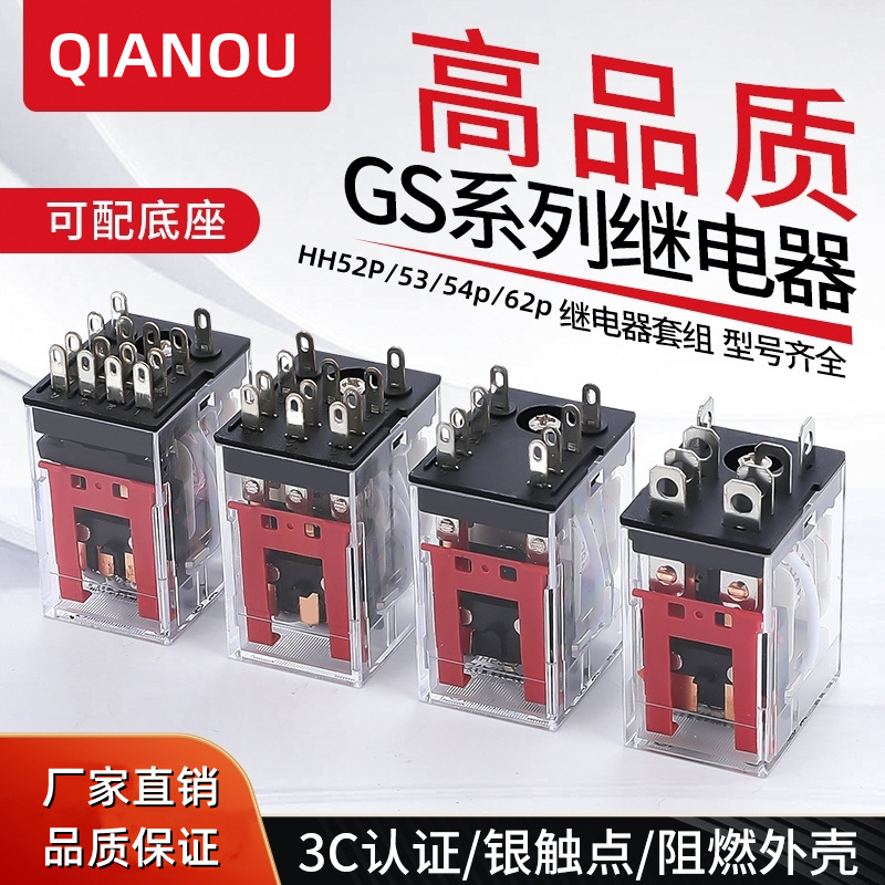 新型小型中間リレーhh52p/53p/54p/62p-gs銀接点dc 12v 24v ac 220v