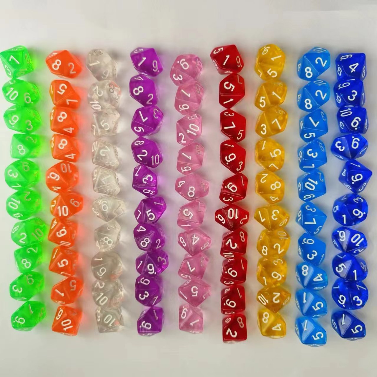 多面デジタルアクリル透明水晶多面体DNDサイコロ10粒1セットCOC色子ゲームサイコロ
