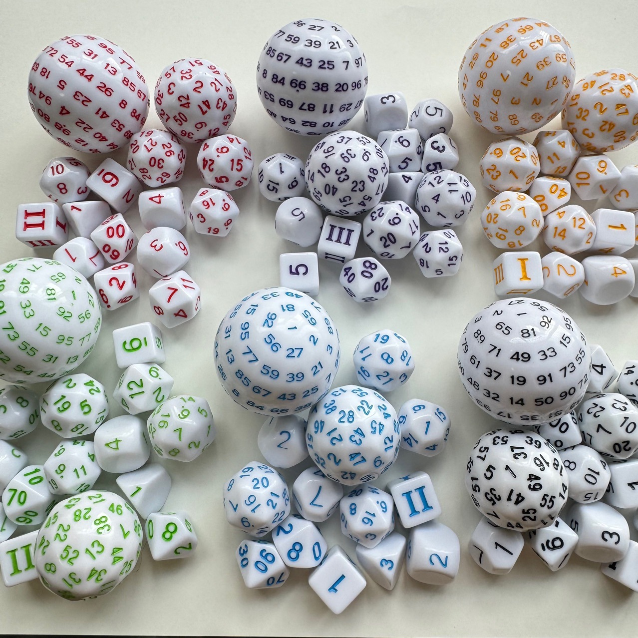 15個セットの実色の白い底の3面から100面の数字のサイコロは贈り物を収集します。