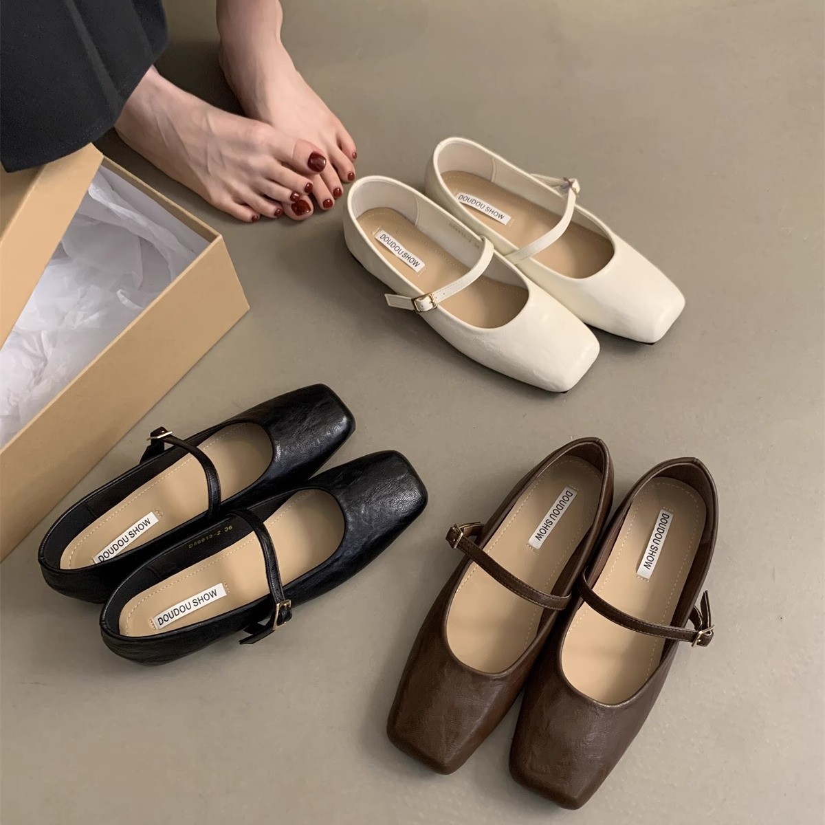 フランスのレトロな四角い靴の女性2025春の新型韓国版アンドロメダのカジュアルな柔らかい平底のメアリー珍靴
