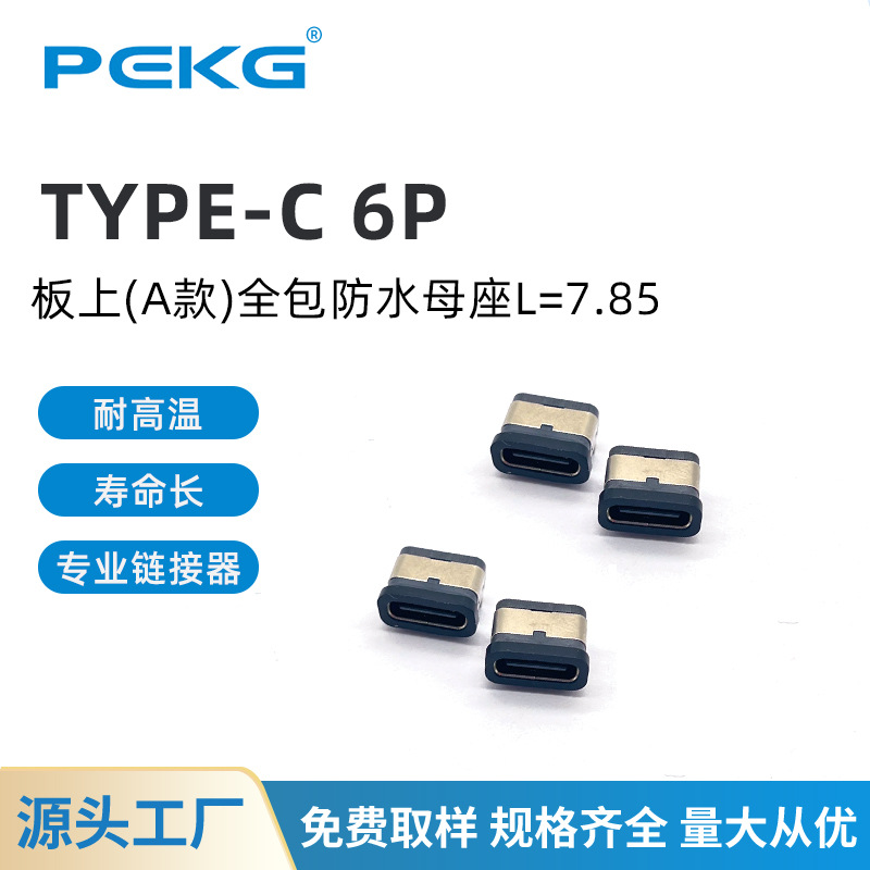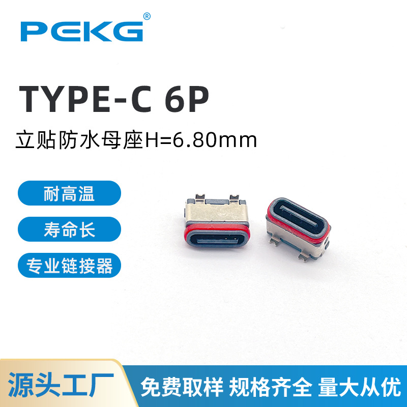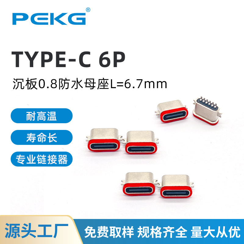 Type-c母座6P/6PIN沈板0.8防水母座パッチ長端IPX7防水母座コネクタ