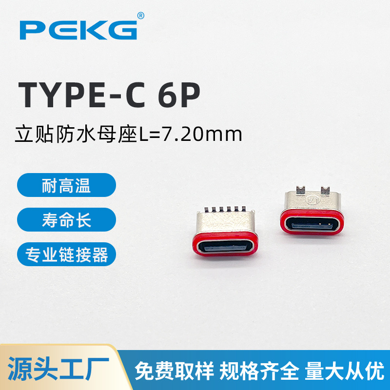 メーカー直売TYPE-C 6P母座防水立貼り両足7.2H単充電USBコネクタSMT母座