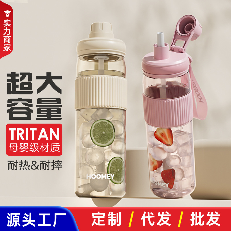 Tritanスポーツカップ女性夏大容量ダブルお茶カップ耐高温児童学生プラスチックストローカップ