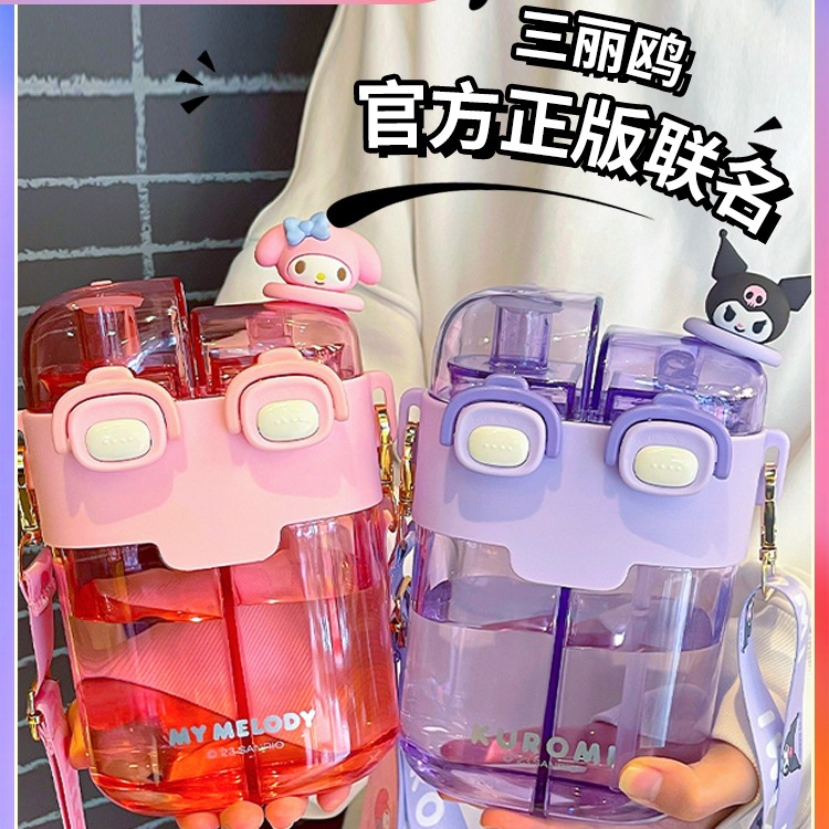 高颜値水杯女子大容量斜めショルダーカップメーカーかわいい水筒子供ダブルドリンク分倉ストローカップ