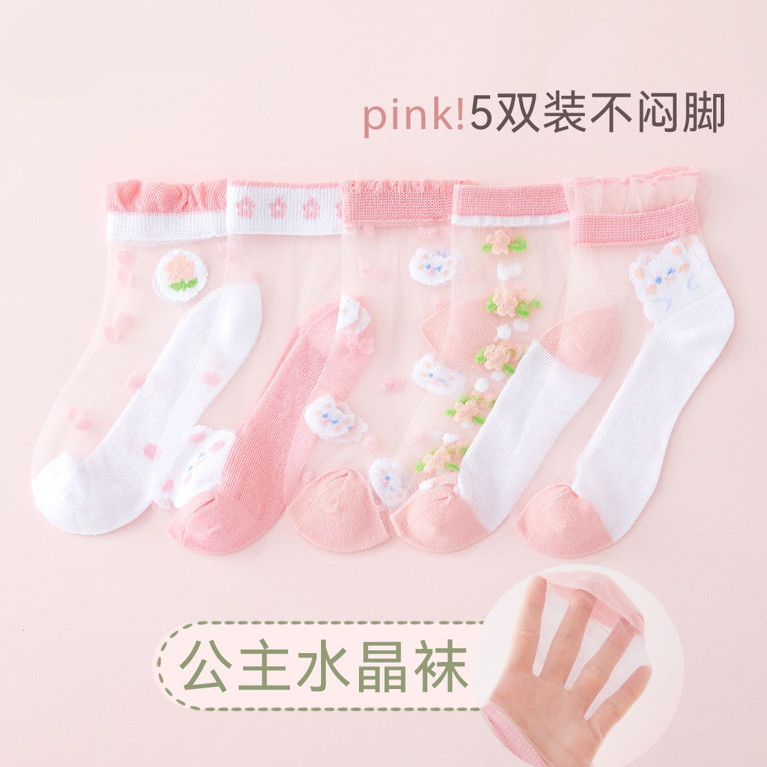 女の子の夏の薄いタイプの氷のストッキングの子供の水晶の夏の超薄いストッキングのネットの目のソックスの通気性の赤ちゃんのソックス