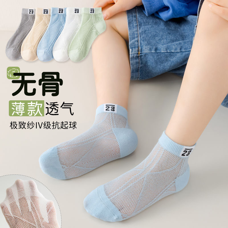 子供用靴下夏超薄型無地男の子ミッドチューブメッシュソックス通気性骨なし中型および大型子供用スポーツ薄手ソックス