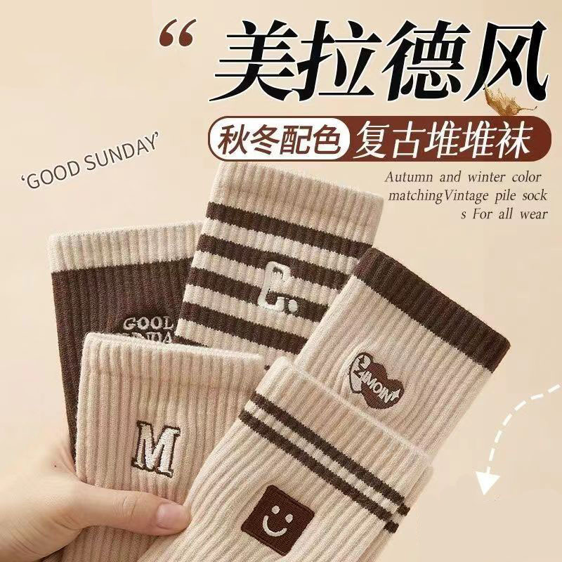 美ラードの靴下の女性の秋冬の中筒の靴下の潮網の赤い金の積み重ねの靴下の女性の復古のストライプのカレーのストッキング