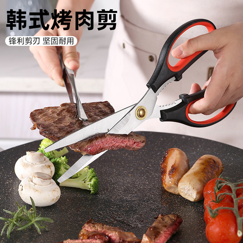 韩式焼肉はさみ曲げ刃キッチンはさみくるみ割り焼肉料理用ステーキ多机能骨はさみ