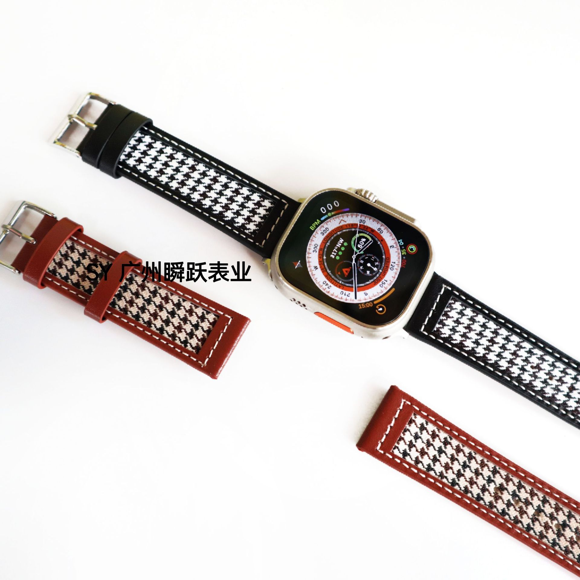 レトロな千鳥格のキャンバスはアップルのスマート腕時計を適用します。