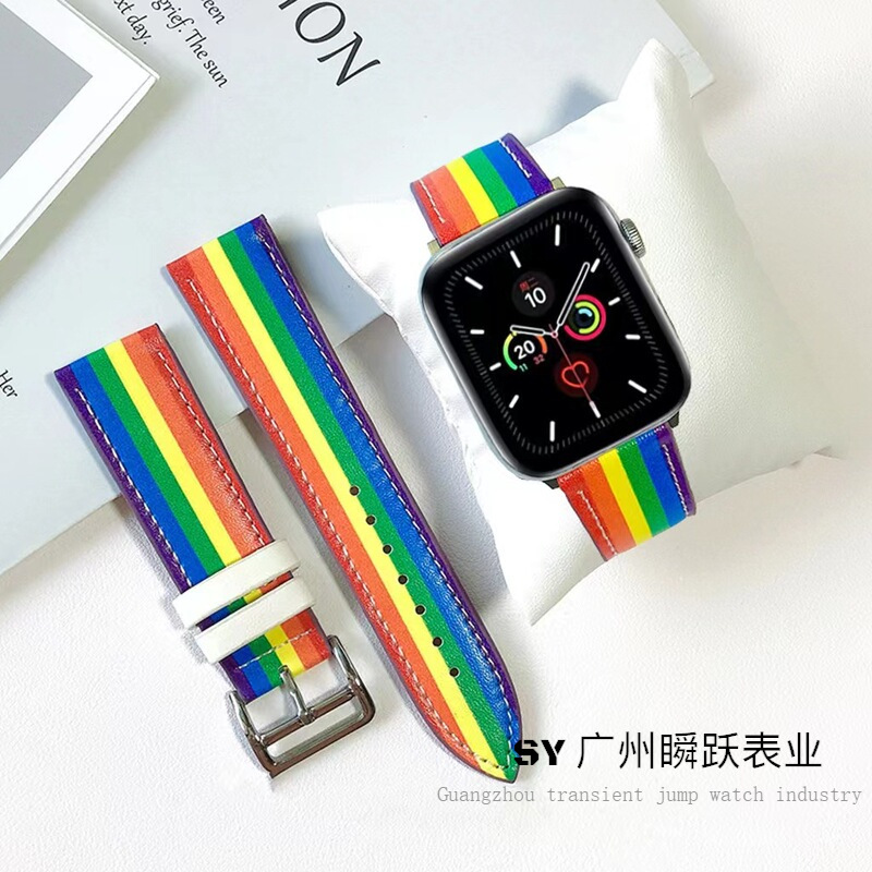 リンゴiwatch1/2/3/4/5世代リンゴバンドpu皮革虹印刷バンド卸売りに適している