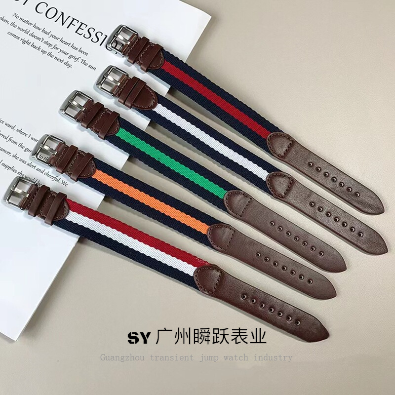 敦煌熱売結合ベルトナイロン帯バラ金ボタン三色ストライプナイロンpuベルトバンド18/20mm