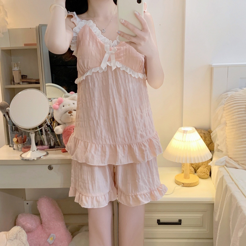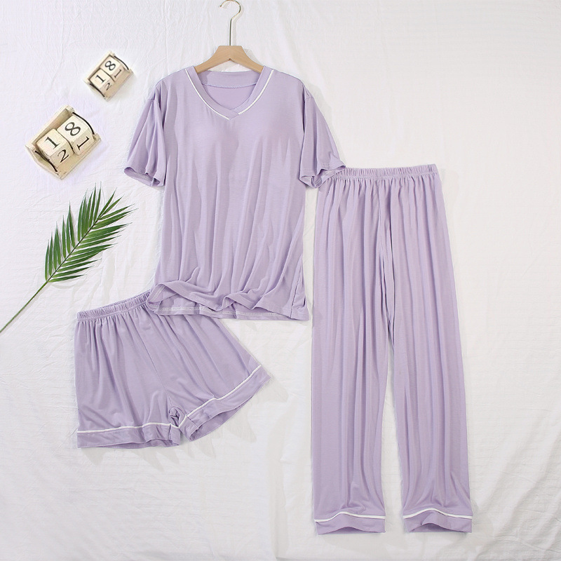 モーダル胸パッド付きパジャマ3点セット女性夏氷糸ゆるい半袖パンツ外着ホームウェア