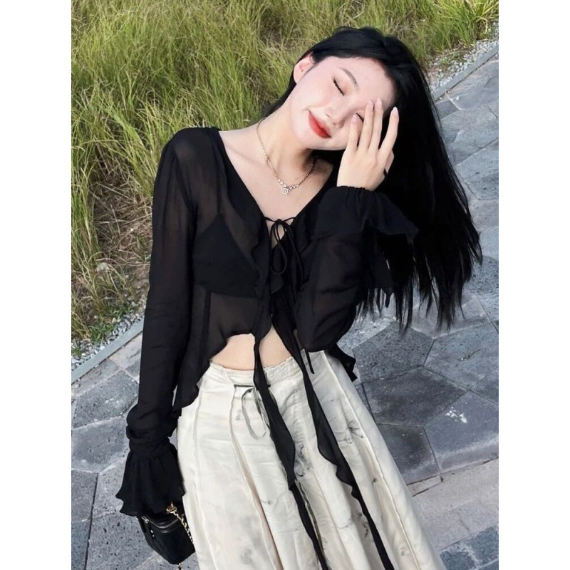 シフォンの日焼け止め服の女性は夏の新しいストラップのスカートのストールを着て通気します。