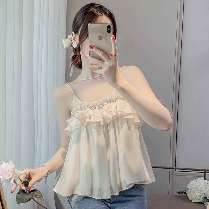 シフォンシャツの女性2024年の新しい夏のキャミソールの中にデザイン感がある