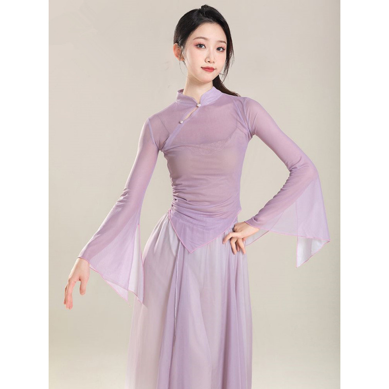 古典的なダンスの韻の糸の夏の長袖の中国のダンスの練習の功服の現代のダンスの演技の服の芸考のダンスの服のクラスの服の女性