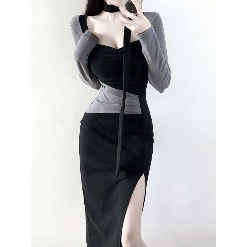 2024年秋の新型襟ワンピースの上着のセクシーな高弾力のガードルはウエストのワンピースの婦人服を収めます。
