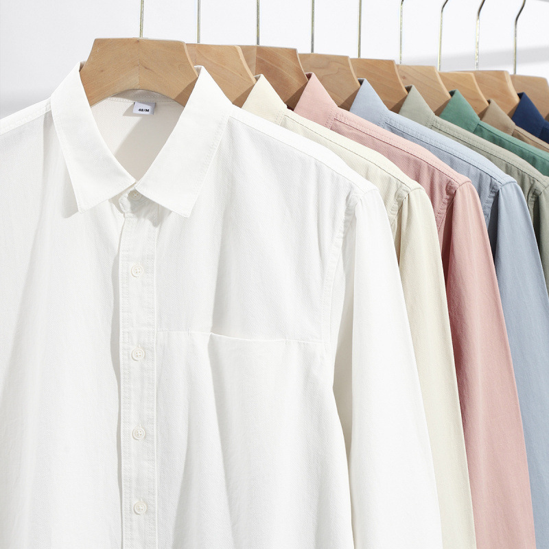 330綿重ポンド不縮透明日系工装風長袖シャツ男性春秋ゆったり無熱シャツ