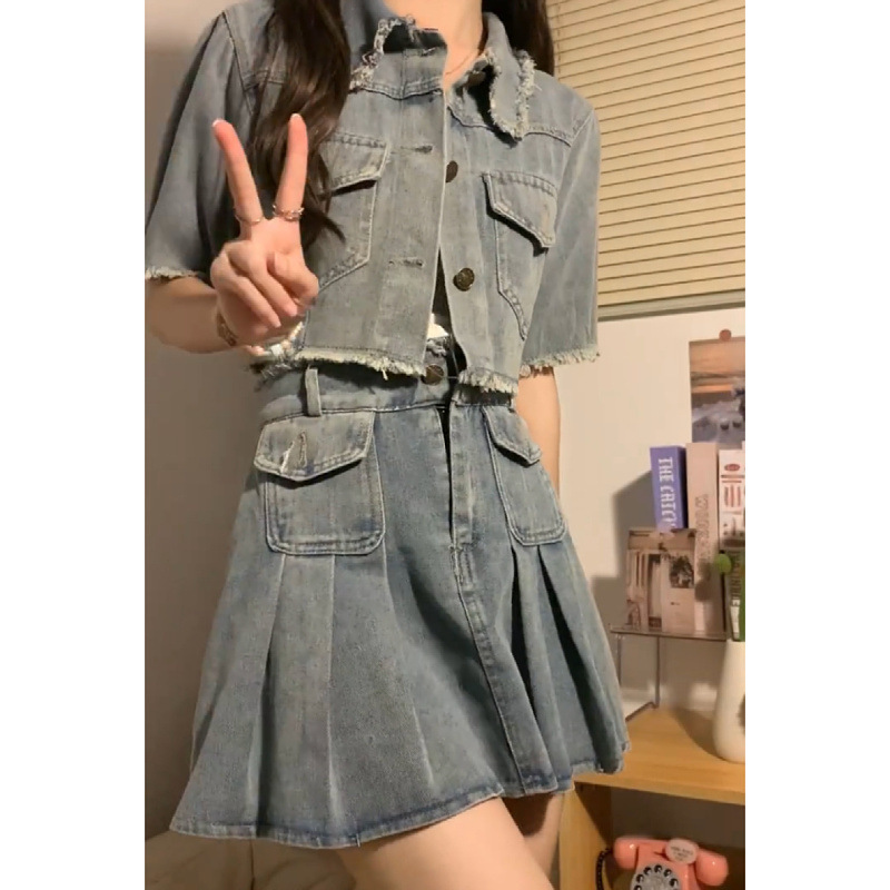 夏の2024年の新型のレトロな大衆のゆったりした短いタイプのフリンジデニムのジャケットの半袖の上着の婦人服のショートコート