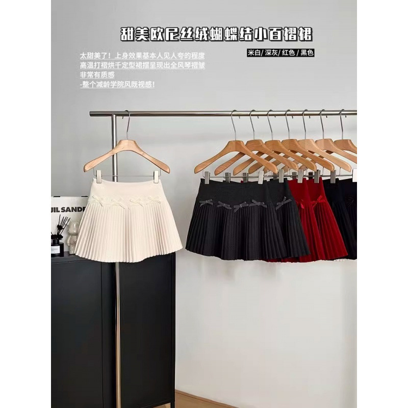 脱光防止の白い甘美な気質の蝶結びのワンピースの女性の秋冬の新型の字の高い腰の毛の半身のスカート