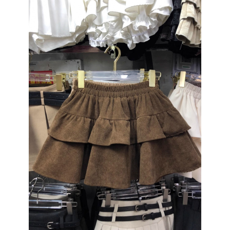 秋冬のウエストのコーデュロイのスカートの女性のハスの葉の辺のケーキの半身のスカートのギャルはやせている字の蓬蓬のスカートを現します。