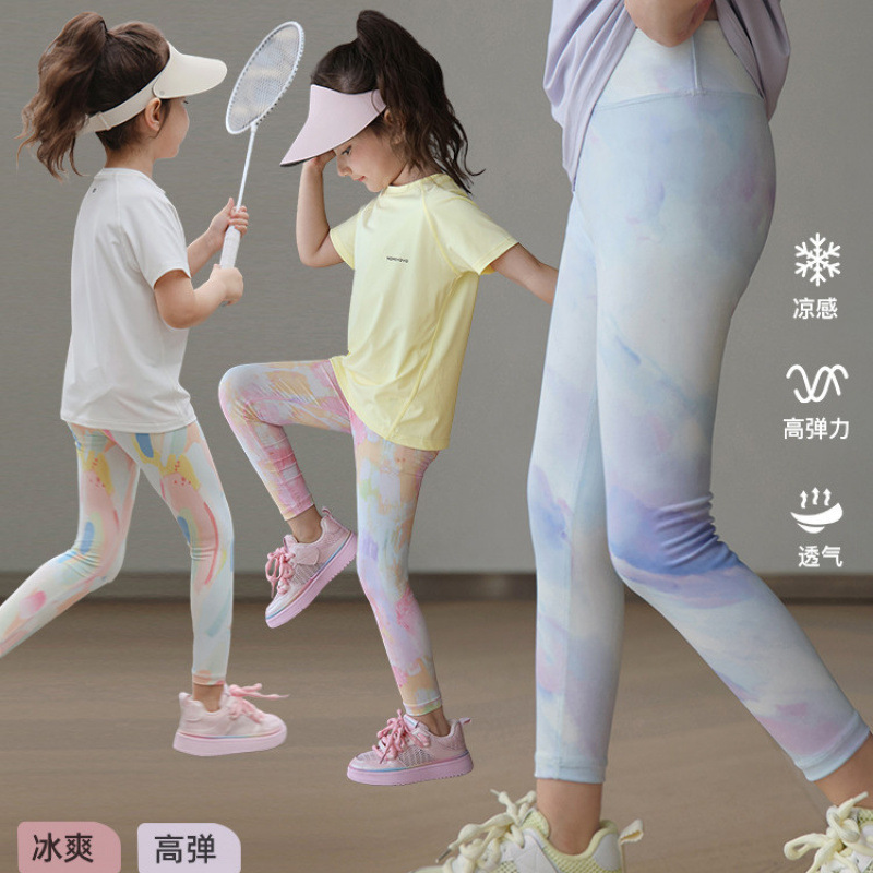 女の子の夏のズボンの洋風の子供のヨガのズボンの日よけの涼しさの感じの屋外の運動のタイツの速乾のズボンの高弾力