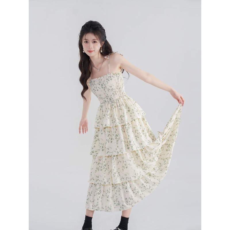 【91率】茶休フレンチのストラップのワンピース