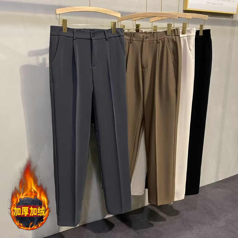 【1.4万人コレクション】春秋タイプのペンダント感のあるズボンの男性のストレートスーツのズボンがゆったりしていて、カジュアルな感じがします。