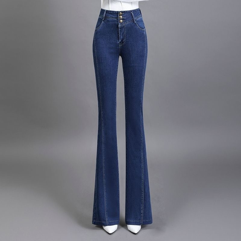 ズボンの女性2024春夏の新型百合のマイクロラッパのジーパンの女性のハイウエストはやせているラッパのズボンの高級感のカジュアルなズボンを現します。