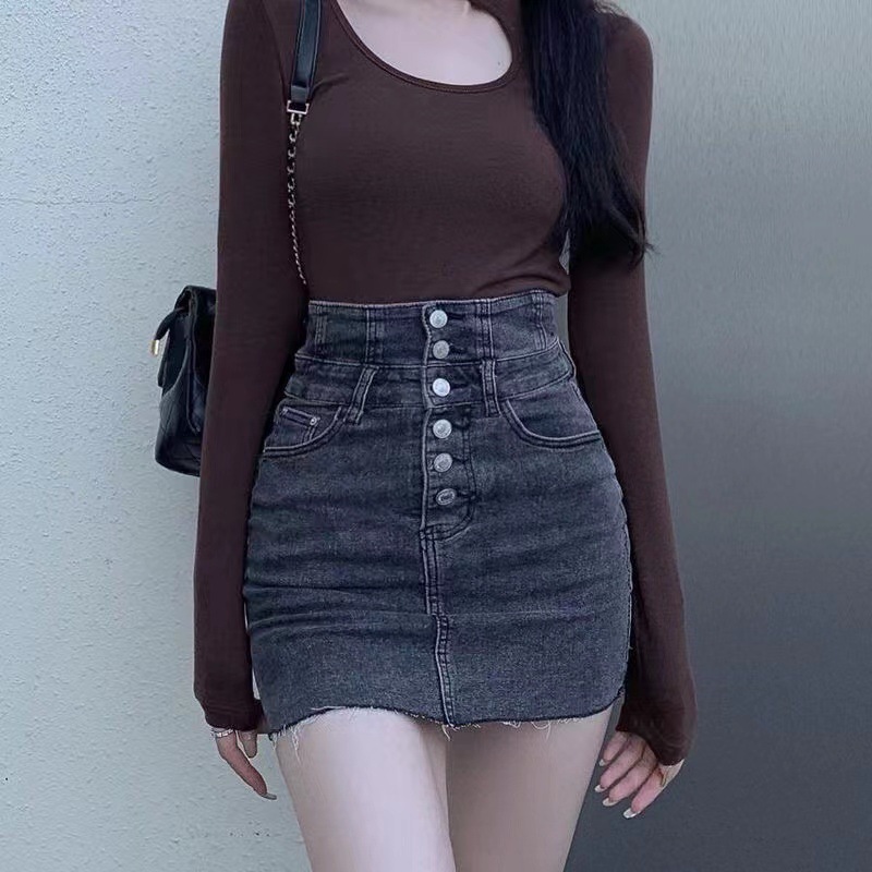 超高腰単列ボタンデニムスカート女性夏2024新作タイトなギャルのセクシーなお尻の短いスカート